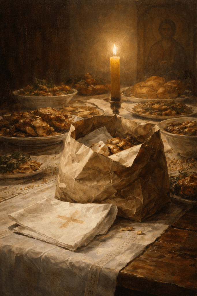Domaćin nas je ispratio do vrata i u kesu spakovao „poslatak“: pečenje, malo sarme i sitne kolače umotane u salvetu. Dok smo se opraštali, prota me je osmotrio kratko. Nije rekao ništa. U njegovom pogledu sam prepoznao razumevanje.Napolju je bilo tiho. Kuća je ostala iza nas. Razgovor se završio, pitanje je ostalo.